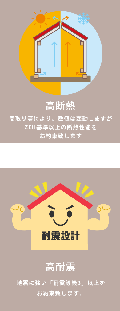 ゼロエネルギーといっても太陽光発電に頼るものではなく、家そのものの省エネルギー対策をすることで、1次エネルギー消費削減率をしっかり上げて効率的なゼロエネルギーを目指します。建物自体の性能は、外皮計算や1次エネルギー消費量により数字でご説明いたします。またご予算に応じた省エネルギー住宅をご提案いたします。
